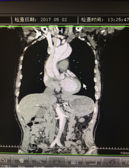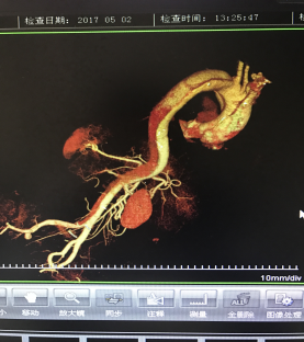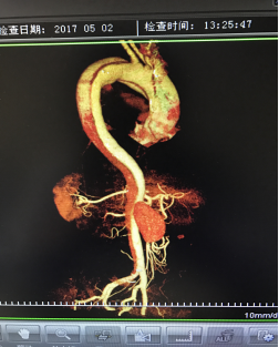 5月2號劉大伯照常早起干活,突然胸部劇烈疼痛,難以忍受,全身大汗,同時伴有右上肢發(fā)涼,他心想這次心絞痛比之前嚴重的多啊,趕緊叫上孩子到吉林國文醫(yī)院心血管內(nèi)科住院,患者長期高血壓病史,血壓一直控制不理想,大夫給他做了檢查,測左上肢血壓:82/45mmHg,右上肢血壓測不出,心率52次/分,右側(cè)肱動脈、尺動脈、橈動脈搏動消失,左側(cè)股動脈搏動較右側(cè)弱?!霸懔耍p側(cè)血壓差別這么大,是不是主動脈夾層了?”,接診大夫趕緊找來李主任,李主任反復(fù)詢問患者病情,表情突然凝重起來,患者胸痛這么明顯,血壓低的厲害,主動脈夾層的可能性很大。二話不說,李主任立即聯(lián)系影像科的醫(yī)生準備做主動脈CTA,移動患者做檢查的過程大夫們非常小心,嚴密監(jiān)測患者血壓變化情況。兩個小時后結(jié)果出來了,主動脈夾層從升主動脈一直撕裂到左側(cè)髂總動脈?。?!