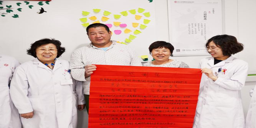 患者張XX,男,53歲,家住遼寧省昌圖縣朝陽鎮(zhèn)高臺子村,患者于入院前2小時無明顯誘因突然出現(xiàn)言語不清,時有糊涂、躁動不安,急來我院就診,急診以“急性腦血管病”收入我科。入院時查體:體溫36.5℃,脈搏98次/分,呼吸18次/分,血壓180/120mmHg,神志模糊,言語不清,感覺性失語,雙側額紋對稱,雙側瞳孔等大同圓,直徑約3.0mm,對光反射靈敏,雙眼各方向運動正常,無眼球震顫,雙側鼻唇溝對稱,伸舌查體不配合,懸雍垂居中,雙側咽反射靈敏,四肢肌力5級,肌張力正常,雙側膝腱對稱存在,雙側Babinski征(+),頸無抵抗,雙側Kernig征(-),深淺感覺未見明顯異常。雙肺呼吸音粗,未聞及明顯干濕啰音,心率98次/分,節(jié)律規(guī)整,各瓣膜聽診區(qū)未聞及雜音,腹平軟,無壓痛,肝脾肋下未觸及,雙下肢無浮腫。患者躁動不安,經(jīng)檢查后考慮患者新發(fā)血栓,不排除大面積梗死,患者病情較重,家里比較困難,且患者在我院不享受醫(yī)療保險,家屬一度想放棄治療,在于艷杰主任耐心的勸解下,且根據(jù)患者的實際情況給予患者合理治療方案,患者的病情逐漸好轉,現(xiàn)患者住院半個月,病情已完全好轉,家屬再三表示感謝,感謝我們還給她一個健健康康的老伴,不僅為其治了病,也為家里減輕了經(jīng)濟負擔,沒有到處亂投醫(yī),延誤患者的病情,為表示感謝,患者妻子為我們?nèi)w醫(yī)護人員寫了感謝信,感謝醫(yī)護人員的照顧,感謝于主任的耐心解釋及用心治療。