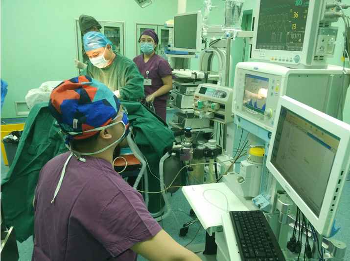 術(shù)前訪視、知情同意簽字、心理支持與鼓勵(lì)和藥物器材的準(zhǔn)備,一切努力都為了這次手術(shù)。建立監(jiān)護(hù)、輸液通道、安全核查、與病人交流緩解壓力……