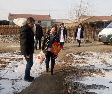 根據(jù)衛(wèi)生局關(guān)于脫貧攻堅(jiān)工作2017年春節(jié)期間“送溫暖”活動(dòng)通知,2017年1月19日,吉林國文醫(yī)院精準(zhǔn)扶貧醫(yī)療隊(duì)一行10人來到大榆樹老柜村,該醫(yī)療團(tuán)隊(duì)由我院內(nèi)外科專家及多名護(hù)士組成,為老柜村14戶幫扶家庭送來生活用品及免費(fèi)檢查。