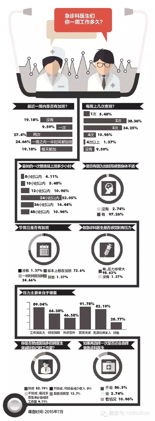 雖然國文醫(yī)院搬進了新院區(qū)但目前急診醫(yī)學(xué)專業(yè)人員依然配備不足,與醫(yī)療急救服務(wù)量不相適應(yīng)?!凹痹\科是醫(yī)院急癥診療的首診場所,并承擔(dān)院前醫(yī)療急救,應(yīng)對突發(fā)公共事件醫(yī)療救治等工作任務(wù)。實行24小時開放,為患者后續(xù)接受??漆t(yī)療服務(wù)提供支持和保障。”相對于急診科醫(yī)生缺乏的現(xiàn)狀,未來也似乎堪憂。絕大同胞明確表示,如果再選擇一次,肯定不會做急診科醫(yī)生。僅有幾名受訪者愿意還會選擇做急診科醫(yī)生。