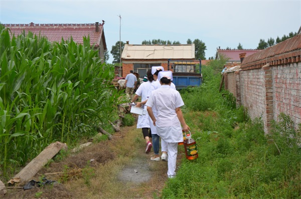 2016年7月13日,吉林國(guó)文醫(yī)院精準(zhǔn)扶貧醫(yī)療隊(duì)一行10人來(lái)到大榆樹(shù)老柜村,為該村14戶幫扶家庭送來(lái)生活用品及免費(fèi)檢查。