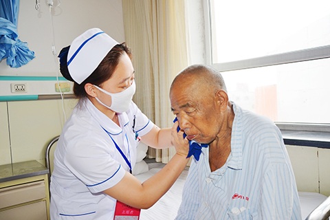 4月17日,吉林國(guó)文醫(yī)院外二科收治一名前列腺增生和睪丸炎、腦血栓后遺癥老年五保戶病人,生活不能自理。病人入院時(shí),穿的衣服上非常臟而且有異味,暴露在外面的皮膚布滿污垢,護(hù)士長(zhǎng)王丹帶領(lǐng)護(hù)士張慧慧給老人洗頭、洗腳、擦洗皮膚并且把老人的臟衣服洗得干干凈凈。