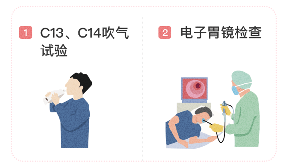 幽門(mén)螺桿菌的檢查方式有兩種: C13、C14吹氣試驗(yàn)或者胃鏡檢查。