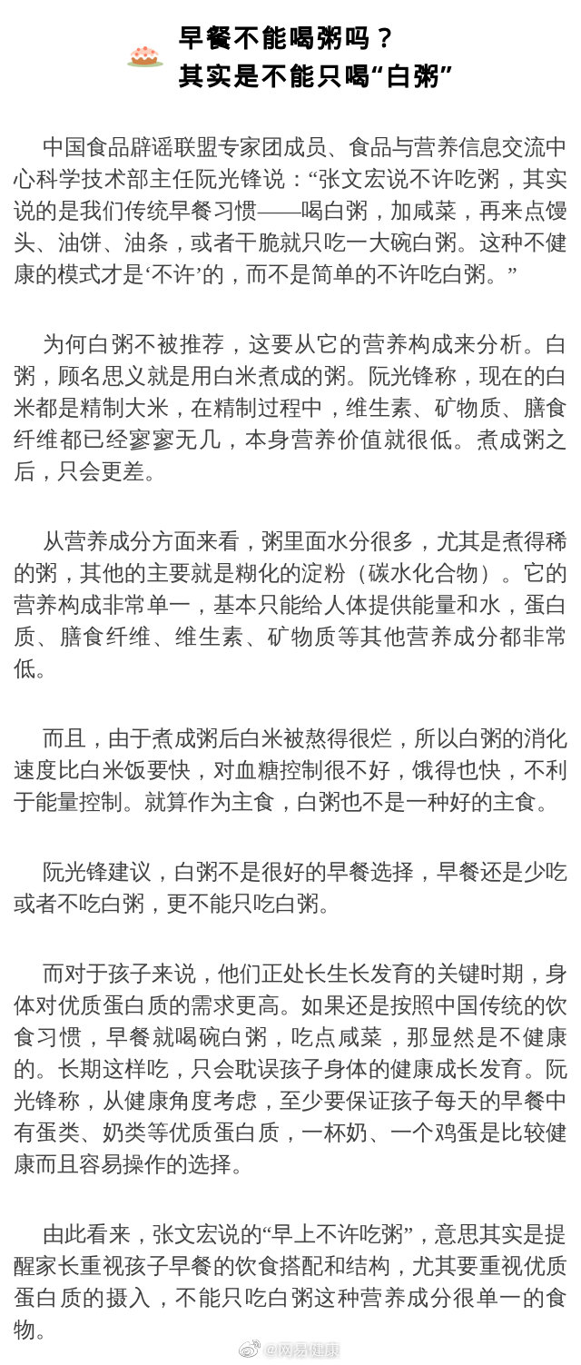 近日,張文宏醫(yī)生“早上不許吃粥”的視頻在網(wǎng)上引起了熱議。早餐吃粥是很多中國人的傳統(tǒng)飲食習慣,而張文宏的觀點讓很多人“手里的粥一下子不香了”。粥到底有什么問題?疫情期間,喝粥會不會導致營養(yǎng)不夠?早餐究竟應該怎么吃才好?