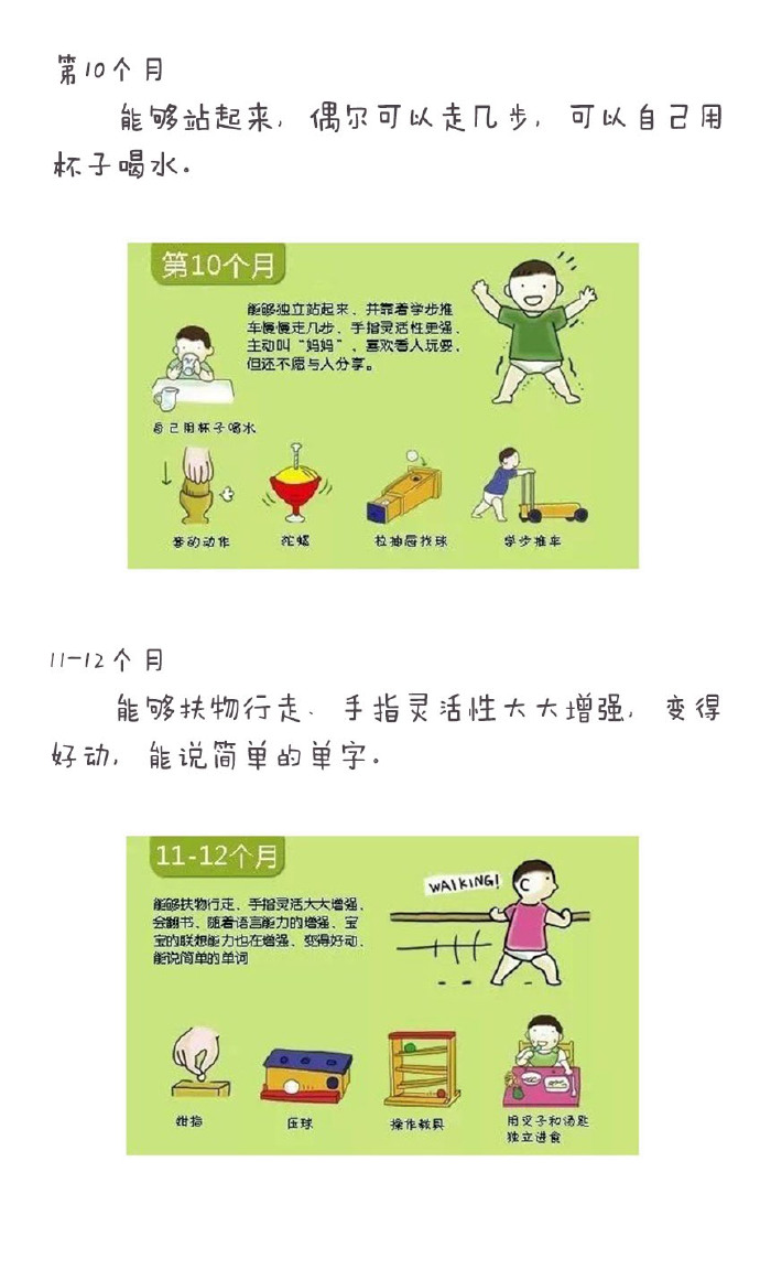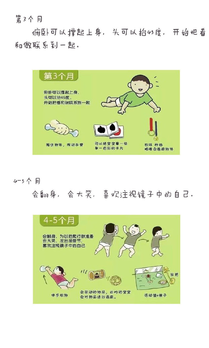 作為家長,從寶寶呱呱墜地起,我們就擔(dān)心,寶寶幾個月會翻身?幾個月走路?多大才會自己吃東西?真是一百二十個心都不夠用的。寶寶1-3歲的發(fā)育圖譜,供家長們參考。同時,每個寶寶都是獨(dú)一無二的,圖譜中是平均值,自己寶寶發(fā)育早點(diǎn)或者晚點(diǎn),無需太過介意