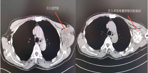近日,吉林國文醫(yī)院淋巴瘤科與介入一科相互合作,成功為一例皮膚惡性黑色素瘤患者,實施了實體腫瘤動脈灌注化療栓塞術(shù),患者李某某10個月前曾確診為皮膚惡性黑色素瘤,腫瘤分布在左側(cè)腋下,患者既往曾多次行靜脈化療及免疫治療,但腫瘤病情仍然繼續(xù)進展,患者目前左側(cè)腋下腫瘤病灶增長較快,伴有局部脹痛感,淋巴瘤科左淑波主任綜合分析患者病情后,邀請介入一科韓長清主任進行共同商討治療方案,評估是否可行介入手術(shù)治療,經(jīng)兩位主任共同商討后決定,可給予患者行腫瘤供血動脈化療栓塞術(shù)介入治療。介入術(shù)中非常順利,成功尋找到腫瘤供血動脈并給予治療,術(shù)后患者恢復(fù)良好,疼痛癥狀有所改善。