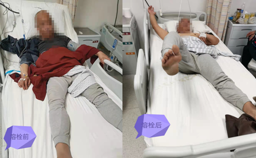 在溶栓過程中,每15分鐘監(jiān)測一次血壓,隨時觀察口腔及皮膚黏膜有無出血,且密切觀察病情變化,高大叔肌力逐漸好轉(zhuǎn),語言功能逐漸恢復。溶栓后第一天高大叔可在家屬攙扶下進行床邊活動,口齒稍清晰,反應和記憶力及邏輯能力正常。溶栓術(shù)后第三天:可自行行走,自行吃飯,生活自理能力明顯改善,治療效果非常顯著。