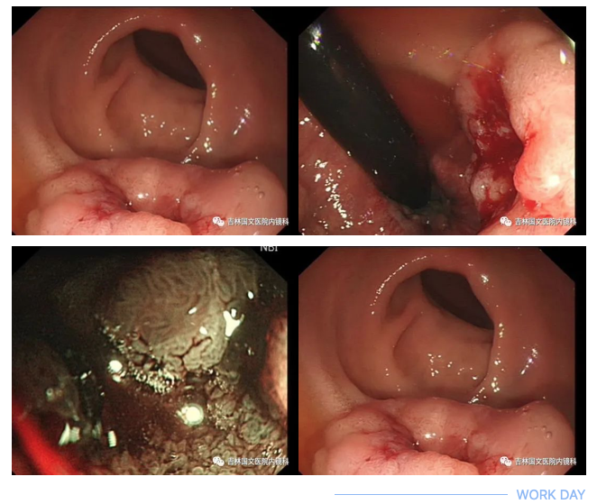 而做到腸鏡時(shí),相同的是,同樣結(jié)腸多發(fā)息肉,而不同的是,距肛門口約3cm見(jiàn)一不規(guī)則隆起腫物,中央凹陷,邊緣呈環(huán)堤樣隆起,NBI下可見(jiàn)腺管結(jié)構(gòu)紊亂不規(guī)則,根據(jù)經(jīng)驗(yàn)來(lái)說(shuō),癌癥的可能性很大,取了病理,待病理匯報(bào)。