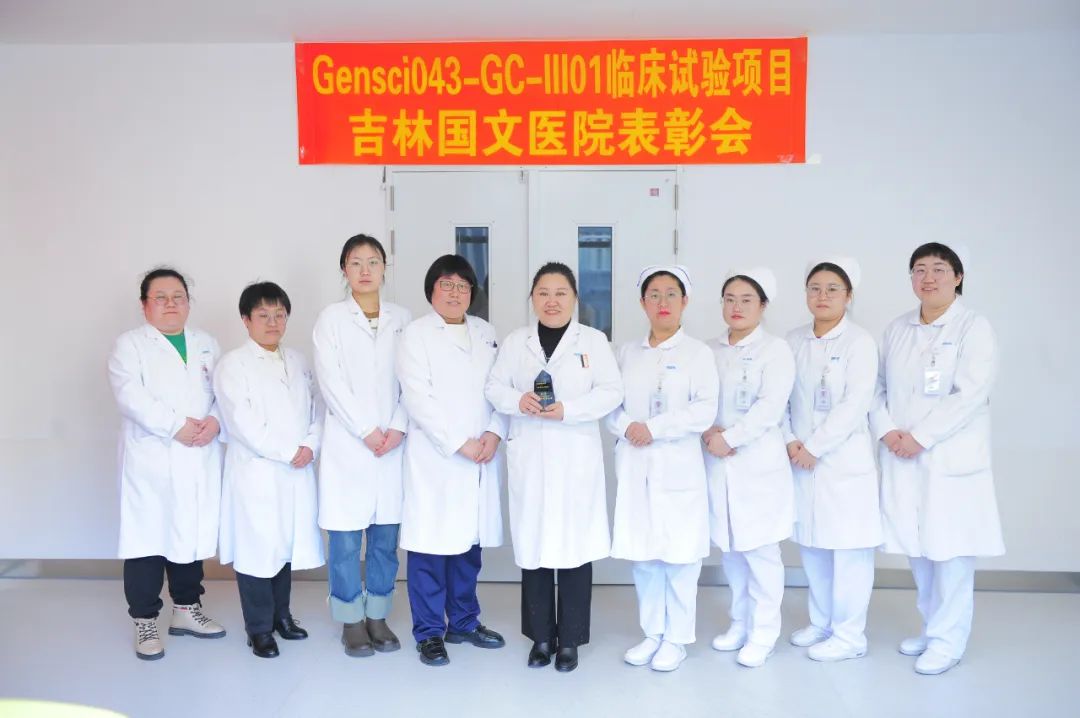 4月8日上午, 長春金賽藥業(yè)有限公司在國文醫(yī)院消化道腫瘤內(nèi)科舉行Gensci043-GC-III01臨床試驗項目表彰會。我院腫瘤中心葛鳳娟副院長、臨床試驗機構(gòu)辦高松主任以及消化道腫瘤內(nèi)科王志強、田雪主任團隊參加表彰會。