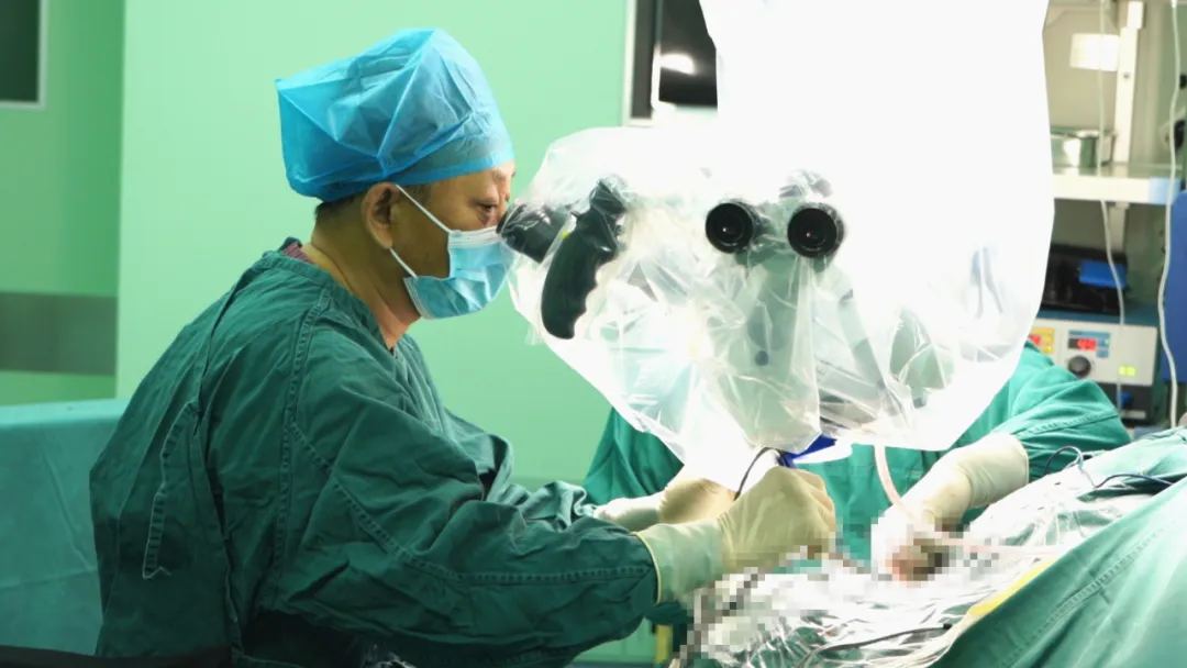 有著豐富神經(jīng)外科手術(shù)經(jīng)驗(yàn)的樸哲范主任帶領(lǐng)團(tuán)隊(duì)詳細(xì)制定手術(shù)計(jì)劃,確保手術(shù)順利開展。手術(shù)當(dāng)日,在全麻下樸主任為患者行左側(cè)小腦半球病損切除術(shù)。術(shù)中可見腫瘤質(zhì)韌,腦膜變薄,基底位于小腦幕,竇匯及左側(cè)橫竇閉塞,無明顯血液回流,在近5個小時的神經(jīng)顯微鏡下操作后,腫瘤被完全切除。