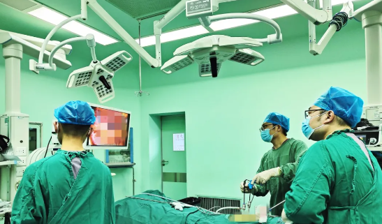 在胃腸外科王得勝主任與朱熠林主任立即詳細(xì)查看患者,根據(jù)王先生的彩超檢查,明確診斷為臍疝,需手術(shù)治療。在與家屬和患者本人溝通后,予以制定腹腔鏡下臍疝無(wú)張力修補(bǔ)術(shù)方案。該手術(shù)與傳統(tǒng)開(kāi)放手術(shù)相比具有疤痕美觀,腹壁不留切口,術(shù)后即可下床活動(dòng),無(wú)明顯疼痛,恢復(fù)周期短、復(fù)發(fā)率低的優(yōu)點(diǎn)。