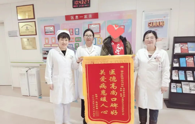 幸運(yùn)的是,送醫(yī)及時(shí),醫(yī)生迅速采取了有效的治療措施。經(jīng)過(guò)全力救治,黃大爺?shù)牟∏橹饾u好轉(zhuǎn)。從一開(kāi)始左胳膊根本抬不起來(lái),到后來(lái)能夠順利舉過(guò)頭頂,從走路搖搖晃晃、不穩(wěn)當(dāng),到最終恢復(fù)正常行走。這一系列的變化,讓黃大爺和家人感激萬(wàn)分。為此,黃大爺一家在出院之際,為特別感謝神經(jīng)內(nèi)科三療區(qū)全體醫(yī)護(hù)人員的精心治療和護(hù)理,特送來(lái)一面錦旗以表達(dá)他們心中說(shuō)不盡的感謝。