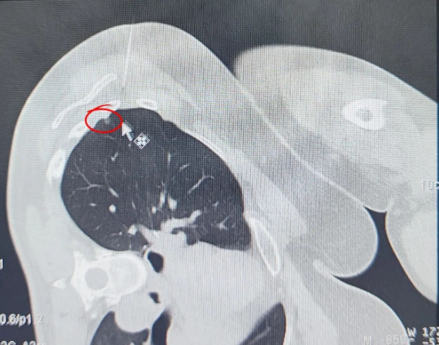 定位技術(shù)升級通過 CT 影像精準(zhǔn)鎖定 6mm 磨玻璃結(jié)節(jié)(圖示可見),全程在麻醉狀態(tài)下完成定位操作,顯著降低傳統(tǒng)清醒定位可能引發(fā)的患者緊張情緒及轉(zhuǎn)運(yùn)風(fēng)險(xiǎn)。微創(chuàng)技術(shù)突破運(yùn)用精細(xì)化微創(chuàng)操作分離粘連組織,在切除病灶過程中精準(zhǔn)避讓正常肺組織,經(jīng)術(shù)后影像評估,實(shí)現(xiàn)病灶完整清除與健康肺功能保留的平衡。