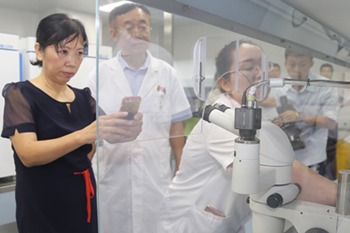 胡云霞今年60歲,出生于公主嶺市,是世界醫(yī)學(xué)輔助領(lǐng)域最權(quán)威的科學(xué)家,此次參加吉商大會,受到省委書記巴音朝魯、省長蔣超良的親切接見,應(yīng)邀來到吉林國文醫(yī)院進(jìn)行參觀考察。上午8時許,在副市長孫淑芹及衛(wèi)計局、經(jīng)合局負(fù)責(zé)人的陪同下,聽取了吉林國文醫(yī)院院長呂國旗關(guān)于技術(shù)設(shè)備、科室設(shè)置及醫(yī)學(xué)輔助生殖中心發(fā)展的情況介紹。胡云霞對吉林國文醫(yī)院醫(yī)學(xué)輔助生殖中心非常關(guān)注,她一邊觀看,一邊詢問,還不時地拿出手機(jī)進(jìn)行拍照。