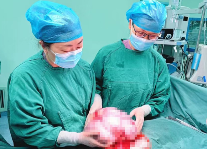 病理結(jié)果回報為 “交界性漿液性腫瘤”,龔萍教授當(dāng)機立斷,決定行全子宮切除術(shù) + 雙側(cè)卵巢及輸卵管切除術(shù) + 大網(wǎng)膜切除術(shù) + 盆腔淋巴結(jié)切除術(shù)。她憑借熟練的操作技巧和精準(zhǔn)的判斷,最終完整取出直徑約 25 厘米、重達(dá) 12 斤的腫瘤。術(shù)后,在醫(yī)護人員的精心照料下,張阿姨恢復(fù)良好。