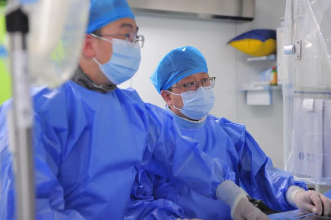 術(shù)前評估顯示患者無對比劑過敏及凝血功能障礙,符合介入治療指征。在完善血常規(guī)、肝腎功能等術(shù)前檢查后,丁金明主任帶領(lǐng)朱洪波副主任等團(tuán)隊成員進(jìn)入介入手術(shù)室。手術(shù)在局部麻醉下進(jìn)行:穿刺右側(cè)股動脈建立通路,將纖細(xì)導(dǎo)絲精準(zhǔn)送至椎動脈狹窄段,沿導(dǎo)絲置入球囊導(dǎo)管?!拔恢镁珳?zhǔn),準(zhǔn)備擴(kuò)張?!?丁金明主任緊盯影像屏幕,微調(diào)導(dǎo)管位置后啟動擴(kuò)張程序。隨著球囊緩慢膨脹,狹窄血管逐步舒展,DSA 實時顯示血流信號逐漸增強(qiáng)。反復(fù)確認(rèn)血管直徑恢復(fù)正常后,撤出器械,壓迫止血完成手術(shù),全程僅用時 30 分鐘。