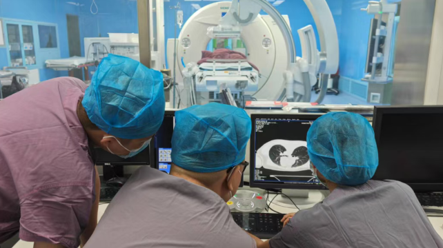 為充分滿足患者需求,國文整合胸外科、影像科技術(shù)優(yōu)勢,制定了個(gè)體化精準(zhǔn)診療方案:手術(shù)全程啟用手術(shù)室內(nèi) CT 實(shí)時(shí)定位系統(tǒng),在患者麻醉狀態(tài)下,由影像科專家通過高精度定位技術(shù),精準(zhǔn)鎖定所有微小病灶的位置,為后續(xù)手術(shù)切除提供 “精準(zhǔn)導(dǎo)航”。