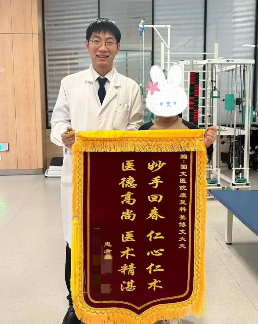三個(gè)月的不懈堅(jiān)持,讓生命奇跡悄然綻放:小佳不僅成功脫離輪椅自主站立,還能穩(wěn)穩(wěn)地在病房內(nèi)自由走動(dòng),甚至能嘗試獨(dú)立上下矮臺階。這份失而復(fù)得的行走能力,讓父母滿心歡喜、熱淚盈眶。他們特意定制了錦旗,由小佳親手送到治療師手中。這面鮮紅的錦旗,不僅是對國文康復(fù)醫(yī)學(xué)科團(tuán)隊(duì)精湛技術(shù)的高度認(rèn)可,更是對國文醫(yī)院“不放棄每一個(gè)生命”醫(yī)者仁心的最真摯致敬。