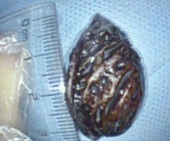 鏡下畫面讓在場醫(yī)護(hù)人員心頭一緊:患者胃黏膜多處出現(xiàn)潰瘍、充血水腫,黏膜狀態(tài)極差,而在胃腔深處,一枚完整的桃核靜靜滯留,表面已被胃酸侵蝕得略顯粗糙,卻依舊保持完整形態(tài)。經(jīng)仔細(xì)詢問病史得知,患者上一次食用桃子還是去年夏天,這意味著,這枚桃核已在他胃里“潛伏”了近一年。