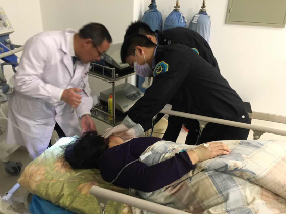 圖為我院急診科護士李劍鋒在為患者洗胃,平時對人友好,樂于助人、工作積極,成為科室的中堅力量!