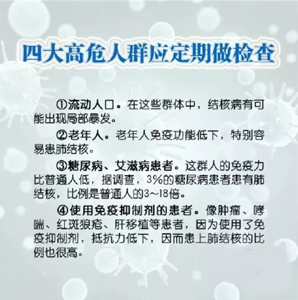 任何人一旦出現(xiàn)“肺結(jié)核的可疑癥狀”,就應(yīng)當(dāng)立即到疾控中心或結(jié)核病防治機構(gòu)就診檢查。