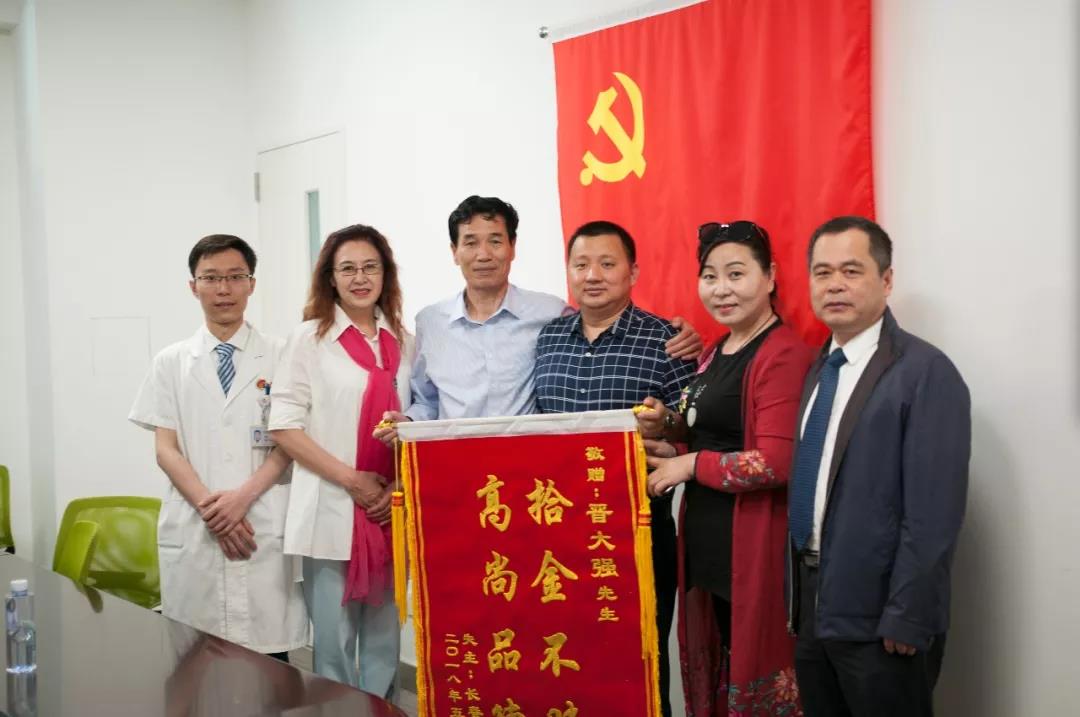 事過多日,失主多次聯(lián)系晉先生,想通過媒體報(bào)道此件好人好事,都被晉先生拒絕了,失主為了一定要答謝,在晉先生不知情的情況下,帶著錦旗來到了國(guó)文醫(yī)院,此事得到吉林國(guó)文醫(yī)院黨委書記/院長(zhǎng)呂國(guó)旗先生的高度贊揚(yáng)并在全院通報(bào),傳播這種高尚品德