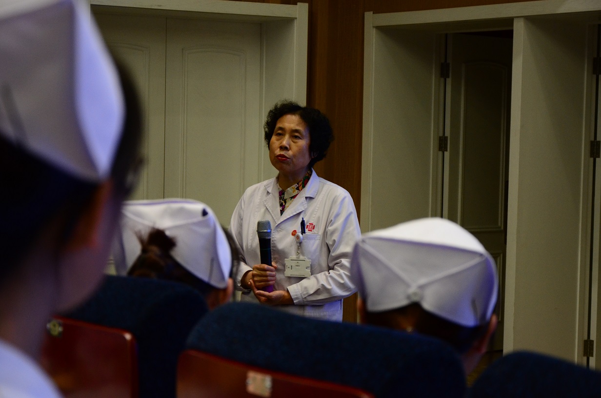 護(hù)理部主任祝巍對(duì)新進(jìn)實(shí)習(xí)生進(jìn)行了簡(jiǎn)單的醫(yī)院介紹和入職培訓(xùn)