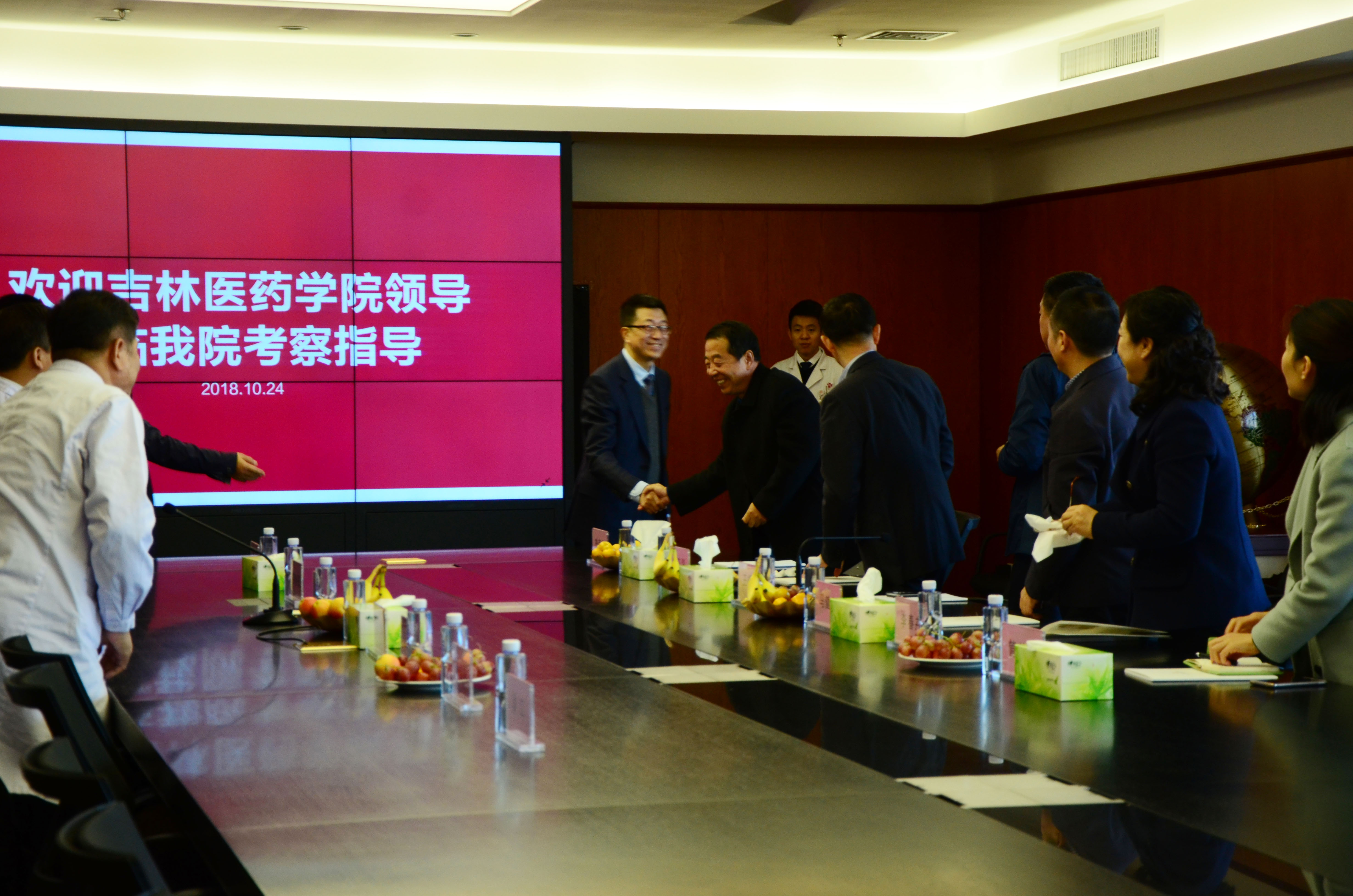 2018年10月24日上午,吉林醫(yī)藥學(xué)院王柳行院長一行6人來到吉林國文醫(yī)院參觀交流,院長呂國旗、副院長高俊田、林楠、邵玉琴熱情接待。