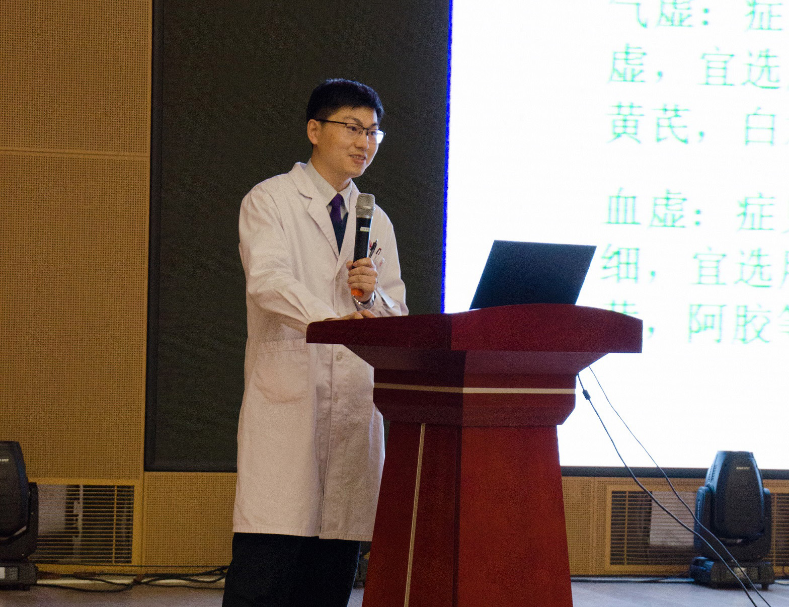 按照會議議程,為貫徹落實中醫(yī)藥法、推進我院中醫(yī)藥事業(yè)發(fā)展,首先由中醫(yī)青年專家宋寬躍給全體醫(yī)師普及和培訓了中醫(yī)藥在腫瘤治療中的地位,宋寬躍說“在當前的惡性腫瘤治療中,中醫(yī)中藥的地位和作用越來越重要。在惡性腫瘤治療的全過程,中醫(yī)中藥都在發(fā)揮著作用,其療效是肯定的,切切實實的。中醫(yī)學則認為惡性腫瘤是全身疾病的局部表現(xiàn),通過調(diào)整機體的陰陽臟腑氣血平衡,達到扶助正氣、抑制癌瘤的目的,延緩甚至阻止癌瘤的發(fā)展,特別適宜于中晚期惡性腫瘤、及老年體弱不適宜手術(shù)的癌瘤患者。