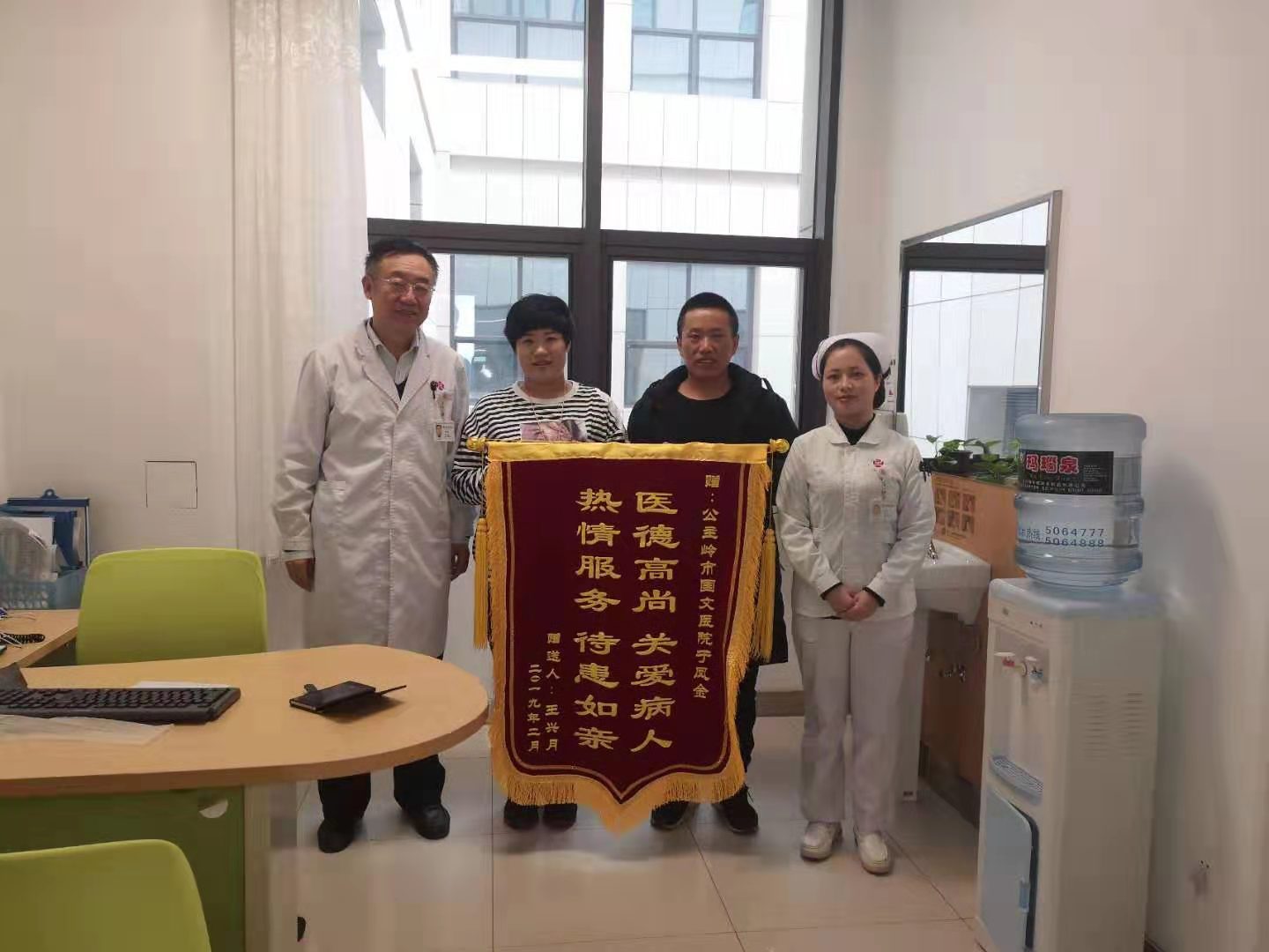 2019年2月27日上午,一對夫婦高興地來到吉林國文醫(yī)院婦科不孕癥門診,鄭重地將一面寫有“醫(yī)德高尚,關(guān)愛病人;熱情服務(wù),待患如親”的錦旗交到于鳳金老師手中,以表達(dá)感激之情。