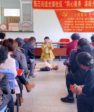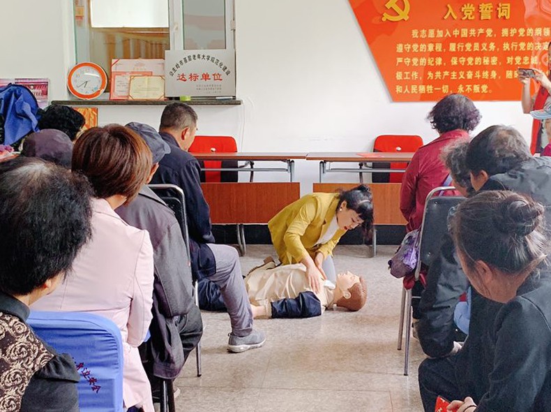 為推進心肺復(fù)蘇技能的推廣與普及,提高全面自救、互救能力,5月8日下午1時許,吉林國文醫(yī)院血液透析科護士長陳美玲協(xié)科室四名護士,前往公主嶺市東三光榮社區(qū)開展主題為“關(guān)愛生命,爭做急救先鋒,國文在行動”心肺復(fù)蘇術(shù)普及活動。參加活動的市民共計100余人,現(xiàn)場氣氛活躍。