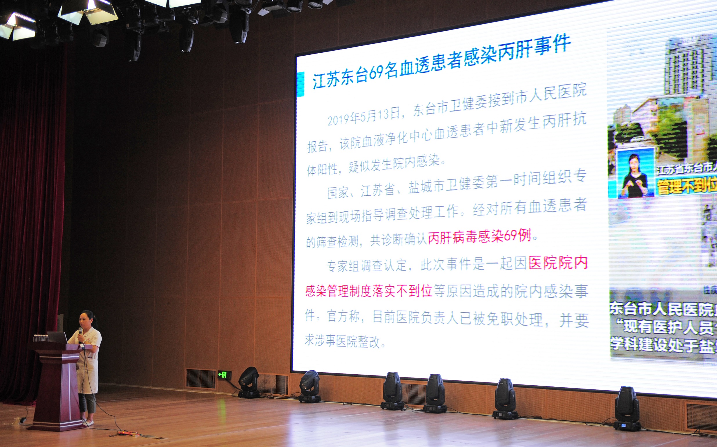 大會第三項議程由感控辦安麗娟主任為全體醫(yī)護人員進行了《醫(yī)院感染管理全員培訓》,安麗娟主任講:近年來,由于濫用抗生素、細菌變異耐藥菌株的明顯增多以及社會老齡化及慢性病病人的增加,加之化療、放療、侵入性診斷、治療措施的廣泛應用,使醫(yī)院感染有日益增多的趨勢。因此,加強醫(yī)院感染管理,提高醫(yī)務人員控制醫(yī)院感染的意識,降低醫(yī)院感染率對于提高醫(yī)療護理質量、促進醫(yī)學發(fā)展、降低醫(yī)療費用、縮短平均住院日等都有著極為重要的意義……