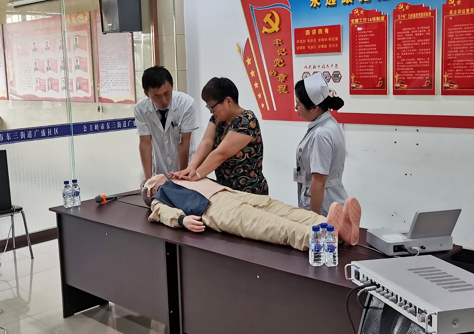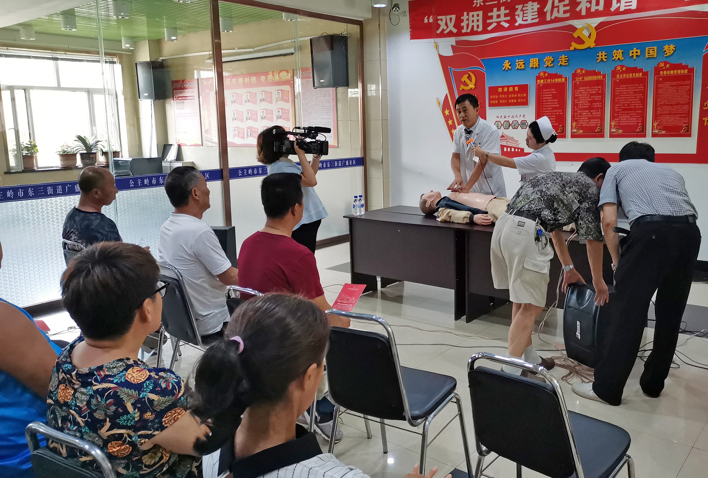 從這樣的角度看,公眾心肺復(fù)蘇普及程度代表了一個(gè)國家的先進(jìn)和文明程度,現(xiàn)實(shí)意義深遠(yuǎn)而重大。為此吉林國文醫(yī)院黨委發(fā)起醫(yī)務(wù)處承辦的心肺復(fù)蘇公益推廣項(xiàng)目,認(rèn)真切實(shí)的為公主嶺市東三街道廣盛社區(qū)的居民們普及了心肺復(fù)蘇急救知識(shí)。由我院理論知識(shí)豐富,技術(shù)精湛的醫(yī)療人員,認(rèn)真切實(shí)的為廣盛社區(qū)90余名社區(qū)居民進(jìn)行急救知識(shí)培訓(xùn),以及應(yīng)急知識(shí)教育。